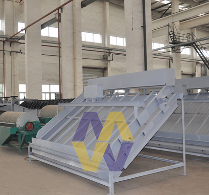 高頻篩效率高、振幅小、篩分頻率高。與普通篩分設(shè)備的原理不同,由于高頻篩采用了高頻率,一方面破壞了礦漿表面的張力和細(xì)粒物料在篩面上的高速振蕩,加速了大密度(比重)有用礦物和析離作用,增加了小于分離粒度物料與篩孔接觸的概率。從而造成了較好的分離條件,使小于分離粒度的物料,特別是比重大的物粒和礦漿一起透過篩孔成為篩下產(chǎn)物。