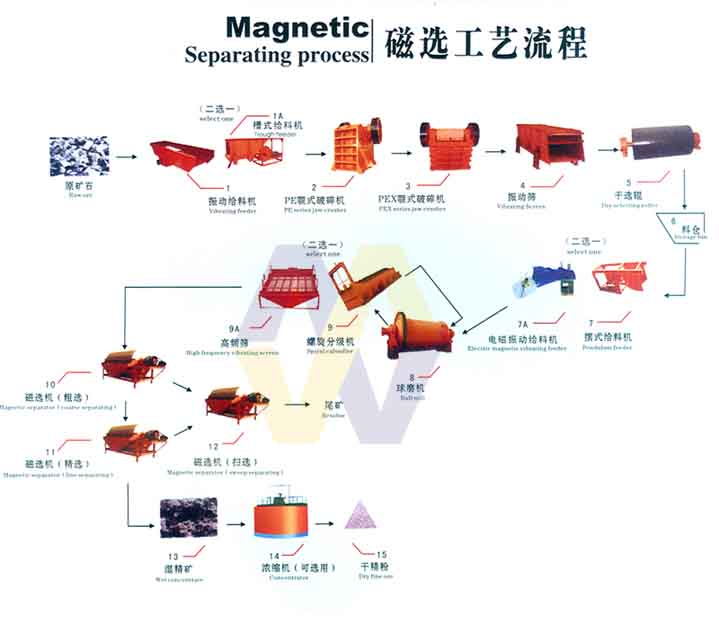 磁選是在不均勻磁場(chǎng)中利用礦物之間磁性的差異使不同礦物實(shí)現(xiàn)分離的一種選礦方法。磁選法是鐵礦石等黑色金屬礦最常用的選礦方法,根據(jù)磁場(chǎng)強(qiáng)度的不同分為弱磁選和強(qiáng)磁選兩大類。弱磁選工藝主要用于處理磁鐵礦等強(qiáng)磁性礦物,強(qiáng)磁選工藝主要用于處理赤鐵礦(紅礦)等弱磁性礦物。